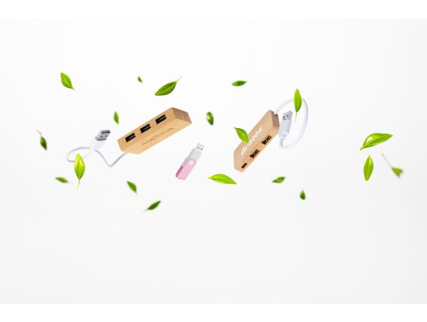 Leer MásHub USB Norman en bambú natural con tres puertos para conectar varios dispositivos a la vez. Tecnología sostenible perfecta para regalar en eventos. Se puede personalizado con tampografía o láser.