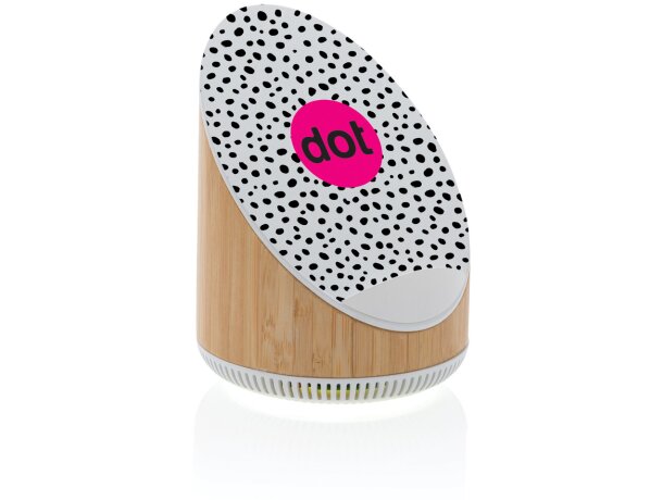 Esta técnica es ideal para logotipos corporativos, códigos QR o diseños promocionales que requieran precisión y calidad profesional en altavoces tecnológicos.