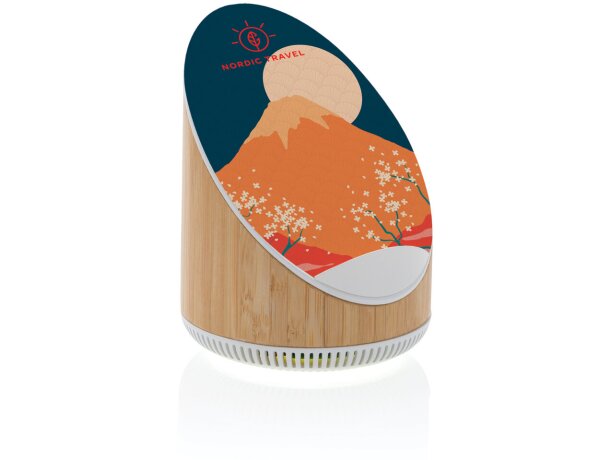 Para personalizarlo correctamente, dispones de dos zonas principales de marcaje: la superficie superior y lateral del altavoz. El área máxima de impresión es de 99 x 140 mm, ofreciendo espacio suficiente para logotipos corporativos, mensajes promocionales o diseños creativos.