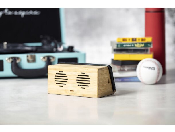 Altavoz cargador inalámbrico Zaphir con bambú natural disponible en acabado único