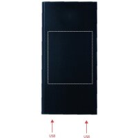 La superficie superior del powerbank ofrece múltiples opciones para personalizarlo según tus necesidades específicas. Para tampografía hasta 4 colores, dispones de un área de 70x60mm, ideal para logotipos corporativos con varios elementos cromáticos. El grabado láser permite un área de 100x50mm, perfecto para crear marcajes elegantes y duraderos que resalten sobre el acabado mate del aluminio.