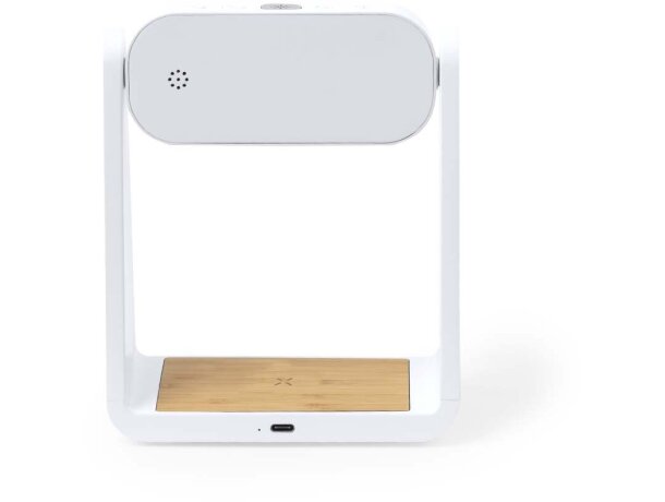 Transforma tu espacio de trabajo con este reloj multifuncional de bambú y ABS que combina elegancia natural con tecnología avanzada. El Darret integra carga inalámbrica de 10W, lámpara LED de 6 luces y reloj digital en un diseño minimalista blanco que aporta sostenibilidad a tu escritorio.