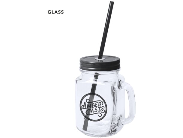 Tarro Heisond de cristal 500ml con tapa metálica y pajita incluida