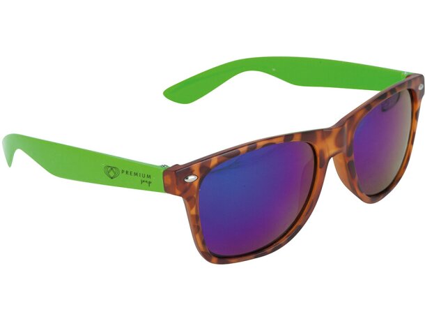 Leer MásGafas de sol para personalizar con acabado nácar y patillas bicolor que combinan estética vintage con protección UV400 certificada ISO 12312. Complemento económico versátil disponible en azul, naranja, rojo y verde.
