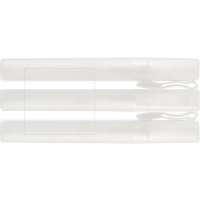 Disponemos de tres zonas de marcaje optimizadas para personalizar tu protector solar: tampografía en cilindro (65x5mm), tampografía junto al clip (65x5mm) y etiqueta digital en cilindro (50x47mm). Estas dimensiones permiten incluir logotipos, textos promocionales o información de contacto de forma visible y profesional.