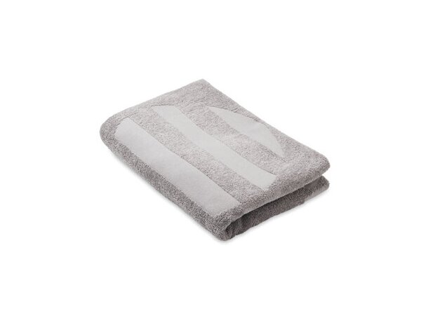 Leer MásToalla de playa en algodón 100% con tejido jacquard 350 gsm en relieve que crea diseños personalizadas integrados en la estructura textil para merchandising de alta absorción y acabado profesional.